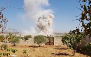 Smoke rises after an airstrike on the rebel-held town of Kafr Nabl.