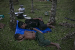 Rohingya refugees sleep at an informal refugee camp in Cox’s Bazar. Nearly 400,000 Rohingyas have fled into Bangladesh during an outbreak of violence in the state of Rakhine.